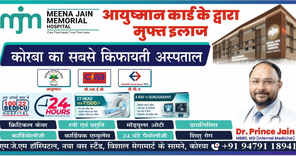 कोरबा (न्यूज वाला)। शहर में सस्ती और बेहतर स्वास्थ्य सेवाओं की तलाश अब खत्म होती नजर आ रही है। मीना जैन मेमोरियल (एमजेएम) हॉस्पिटल ने खुद को न सिर्फ किफायती बल्कि पूरी तरह कैशलेस इलाज केंद्र के रूप में स्थापित कर लिया है। अब आयुष्मान कार्ड और विभिन्न हेल्थ इंश्योरेंस योजनाओं के माध्यम से मरीजों […]