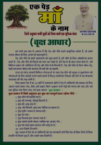 भारत देश में जिले अनुसार हर वृक्ष को एक यूनिक नंबर दिया जाए जिसे कहा जाएगा वृक्ष आधार वृक्ष आधार में वृक्ष से संबंधित संपूर्ण जानकारी होगी।
