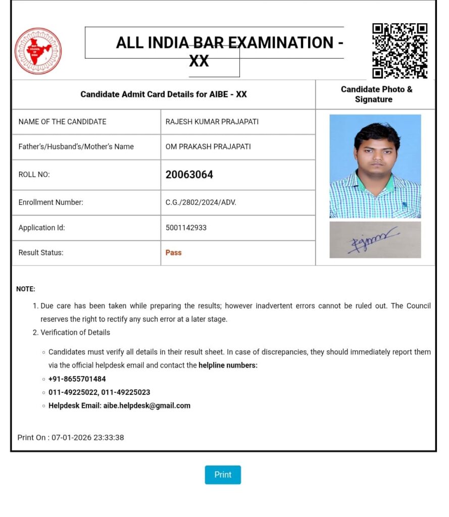 ऑल इंडिया बार एग्ज़ामिनेशन देश भर के विधि स्नातकों के लिए एक अनिवार्य और चुनौतीपूर्ण परीक्षा मानी जाती है, जिसमें कानून से जुड़े विभिन्न विषयों की गहरी समझ और व्यावहारिक ज्ञान की परीक्षा ली जाती है। राजेश कुमार प्रजापति ने कड़ी मेहनत, अनुशासन, निरंतर अध्ययन और आत्मविश्वास के बल पर यह सफलता अर्जित की है।